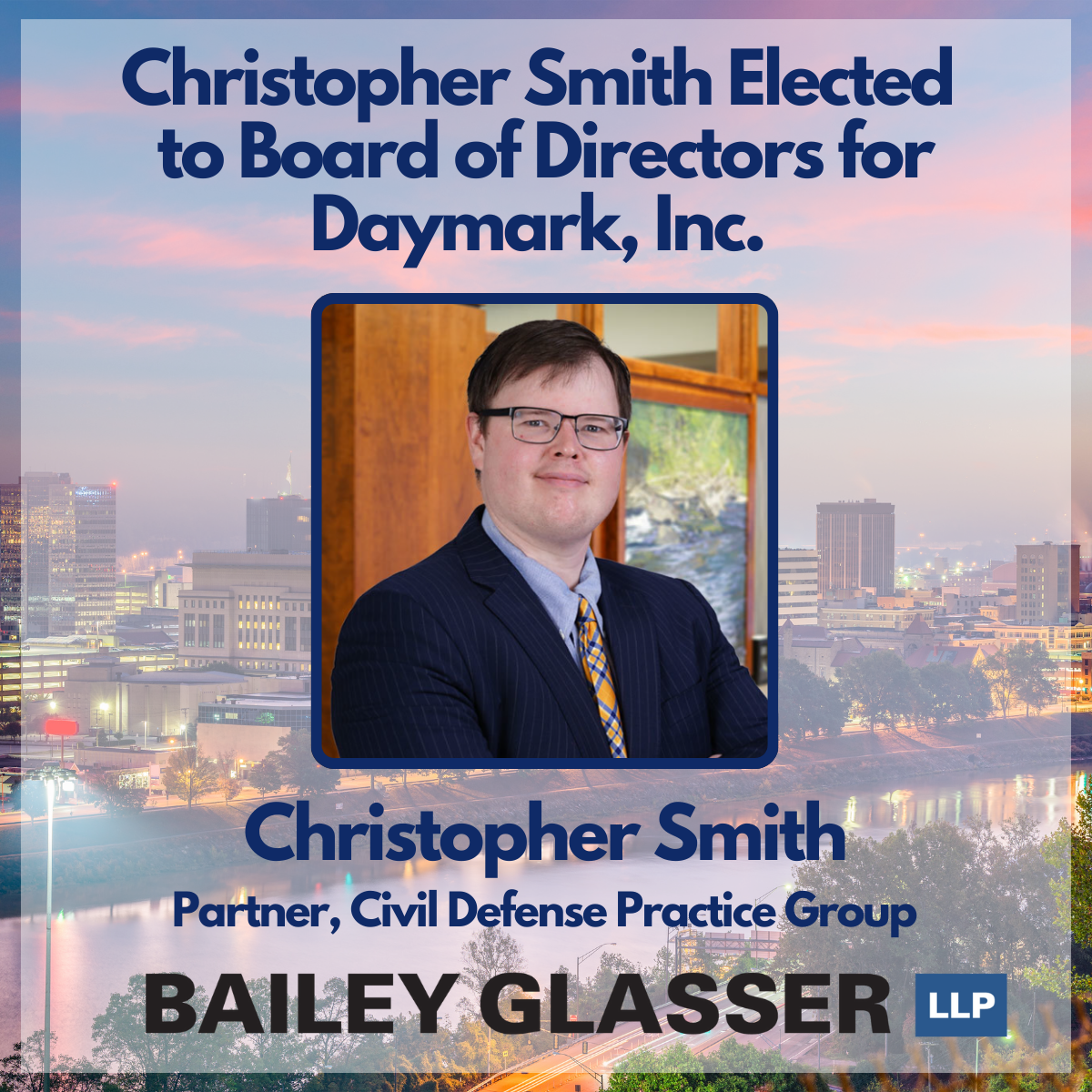 Bailey & Glasser, LLP partner Christopher Smith has been elected to the Board of Directors of Daymark, Inc., a nonprofit dedicated to providing housing, career training, and critical support services to children in West Virginia.